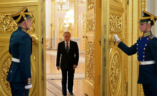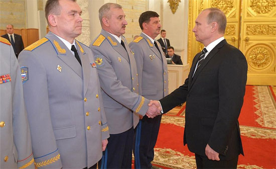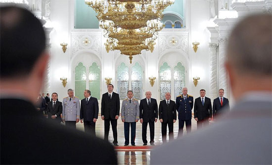 当地时间10月20日,普京在克里姆林宫乔治厅出席俄军高级将领晋职晋衔仪式