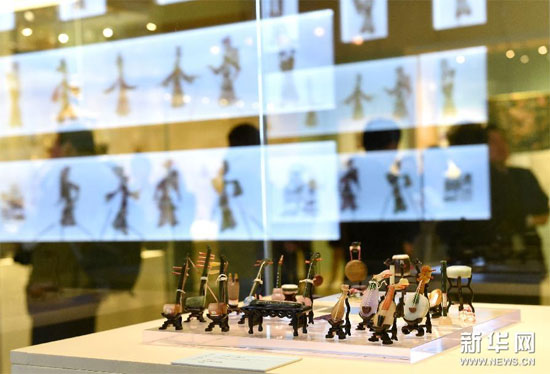 10月29日,来自江苏苏州的近代乐器小摆件(下)等戏曲文物在展厅展出 孙参/摄