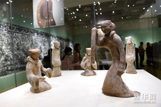 10月29日,江苏徐州出土的一组西汉乐舞陶俑在展厅展出 孙参/摄