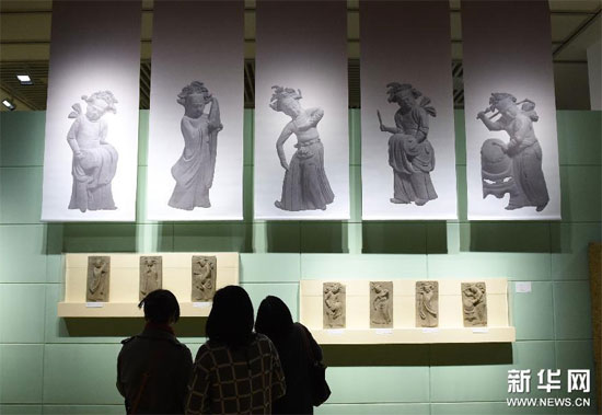 10月29日,观众在参观来自山西的金代散乐砖雕 孙参/摄