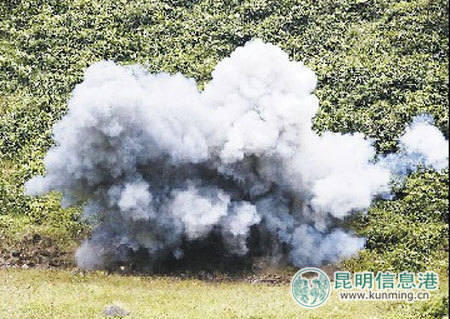 雷区的地雷被炸药引爆的瞬间