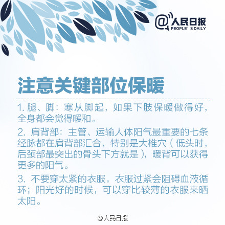 这种人只是手脚发凉,身体躯干部分是不怕冷的,甚至怕热。这类人应加强运动,尤其是久坐或久立的人,必须重视工间操,多做手足和腰部的活动,以加强血液循环。