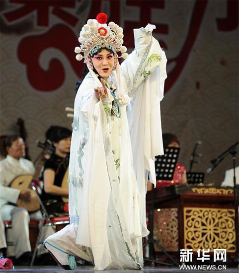 11月16日,演员刘红梅在表演《断桥》选段 王鹏/摄