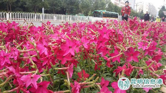 上周末,昆明迎来了“小雪”节气,但在艳阳之下,昆明人似乎并未感觉到冬天已经来了。行走在公路边,也会有红花绿叶的清新风景,而花烟草就是其中一种。目前,这种名字还不太为人所知的花卉正在西山区兴苑路的机非隔离带上缤纷绽放。