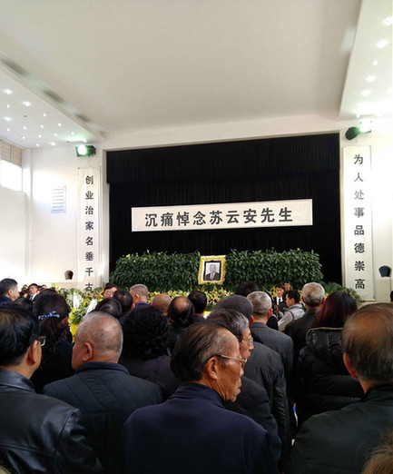 追悼会现场哀乐婉鸣,气氛凝重。云南省、昆明市、西山区部分政要、苏云安生前亲朋好友及乡邻、云安集团各项目合作伙伴,以及社会各界500余人,向苏云安遗体鞠躬致敬,与其家属握手慰问。