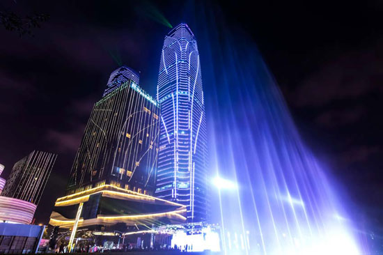 多彩的灯光和高达38米的音乐喷泉一起震撼登场。