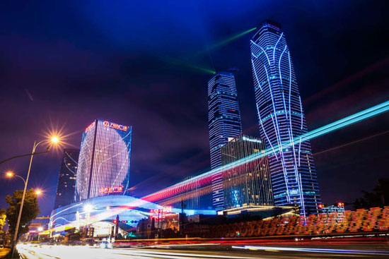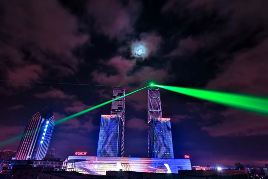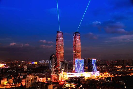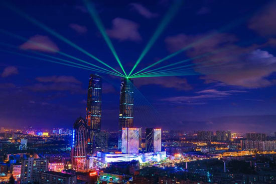 昆明万达双塔举行亮灯仪式 将创中国最高双塔被点亮记录