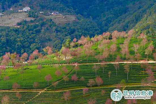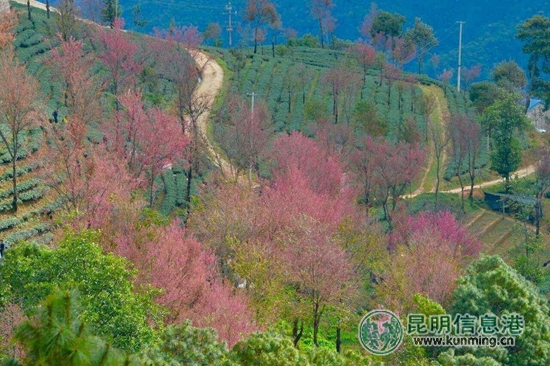 走进南涧无量山,游客漫步在山岚雾气之中,空气清新、植被依旧丰茂。向山谷里望去,在群山的怀抱中,粉红娇艳的冬樱花衬着翠色绸带般的茶园,星星点点连成片,在阳光的照耀下犹如一幅画卷。樱花花枝随风摇摆,花瓣迎风飘落,散歩在低矮的茶丛中,绿的墨绿,红的淡粉,一高一低,层次分明。在山上的游客无不被这仙境般的景色吸引,大家纷纷拿出手机相机,记录下这美丽动人的画面。