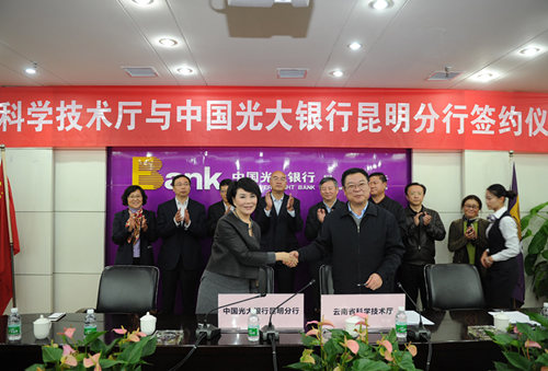 昆明信息港讯 11月27日,云南省科学技术厅(以下简称省科技厅)与中国光大银行昆明分行(以下简称光大银行)签订《合作框架协议》,标志着省科技厅和光大银行共同搭建平台促进科技成果转化与产业化,支持我省科技型中小企业发展工作正式启动。光大银行将以省科技厅认定的科技型中小企业作为优先和重点服务对象,提供总额60亿元的意向性融资额度及多项创新服务。