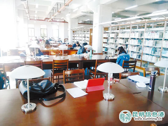 作为全省单体建筑规模最大的图书馆之一,云南大学新图书馆地上有5层,藏书量多达380万册,其中以社会性文学书籍为主,可供6000多人同时阅览。甚至为了方便学生借书、阅读,图书馆内还采用了智能电控系统,所有书架、桌子上方的灯都有智能感应,无人的时候自动熄灭节省电能,有人的时候便会自动照明。一位老师感慨地说:“校园图书馆是越建越大,书籍是越来越丰富,可真正来图书馆借书、阅读的人却越来越少,更多的人只把这里当成自习室。”