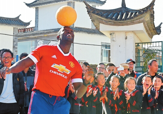 昨日,作为“红粉笔乡村教育计划”公益活动的志愿者,前曼联“黑风双煞”之一的球员德怀特·约克来到大理白族自治州大理市双廊镇长育完小,带领孩子们一起踢足球,交流球技。
