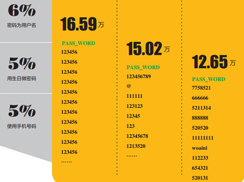在互联网时代,网站的失守就可能意味着网友信息的泄露。为什么如此私密的事谁都能知道呢?设置密码的网友们也要自己找找原因,密码是不是设置得过于简单。根据数据分析,容易破解的密码大致分为五个派系。