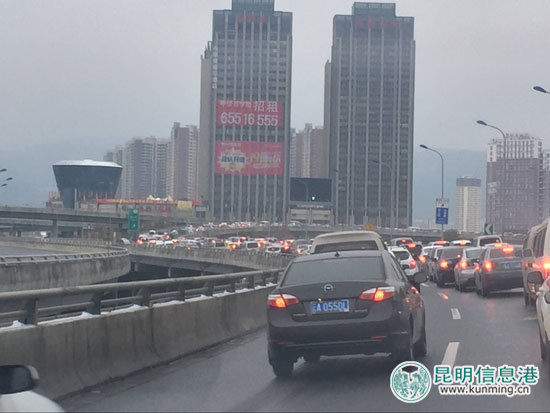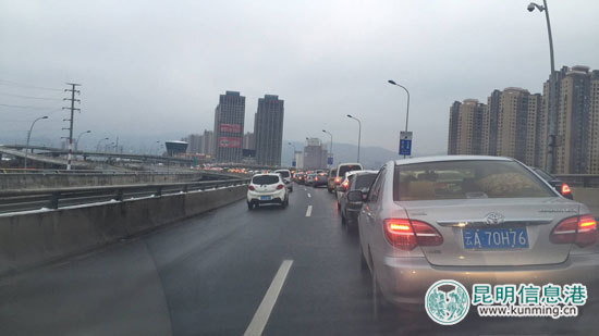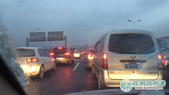 昨天,昆明市交警封闭了6条路,影响最大的是西北绕城高速,这条路在行经安宁市白眉村、西山区团结街道办路段,有几座凌空建设的大桥,处于风口上,都已经结冰。从昨天凌晨就已经封闭。交警四大队民警积极协调养护部门,调集融雪剂,对结冰大桥泼洒快速融冰。一直到下午2点半,道路才基本开通。