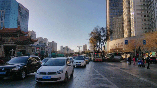 昆明南屏街人流量平稳 车辆通行正常