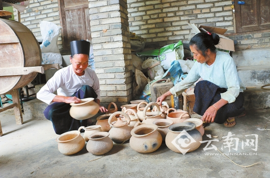 “现在我家上初二的外孙女跟着我在学制陶,希望这门手艺能传下去。”岳孟团说,芒项村制陶材料取自该村特有的一种黑色泥土,制作出来的陶器古朴美观,主要器型有罐、壶、锅等。