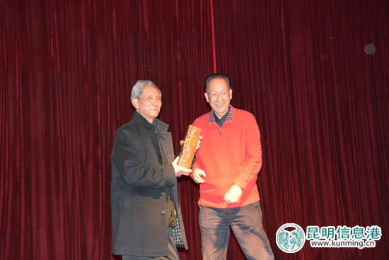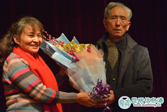 云南省文联原副主席晓雪为余斌教授颁发奖杯。首席摄影记者林坚/摄