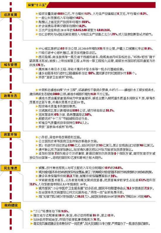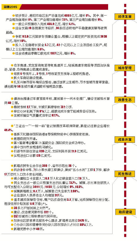 在昨日上午举行的昆明市第十三届人民代表大会第七次会议上,代市长王喜良代表市人民政府作《政府工作报告》,对2015年和“十二五”时期的工作进行了回顾,并介绍了“十三五”时期的主要目标和任务及2016年的工作。