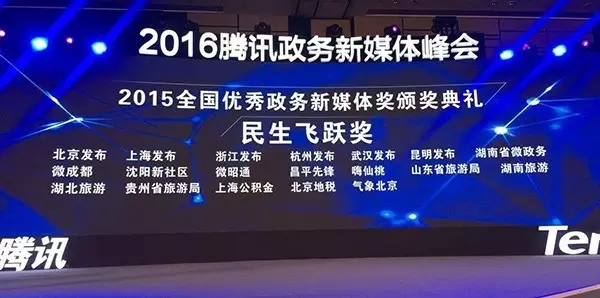 1月18日下午,2016腾讯政务新媒体峰会在北京拉开帷幕。在本届新媒体峰会上,腾讯发布了《2015年度全国政务新媒体报告》,并对优秀政务新媒体进行了表彰,其中“昆明发布”和“微昭通”获得2015年全国优秀政务新媒体民生飞跃奖。