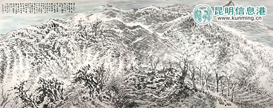 尽管十分寒冷,画展依然吸引了众多书画爱好者,其中不乏许多闻讯而至的外国人。作为云南著名画家之一,寇子皓的作品从来不缺乏赞誉和追捧,而这些天,他却像一个普通的观展者一样,混杂在人群中,细细聆听每一个人的评价和感叹,间或和人们打个招呼交流几句。