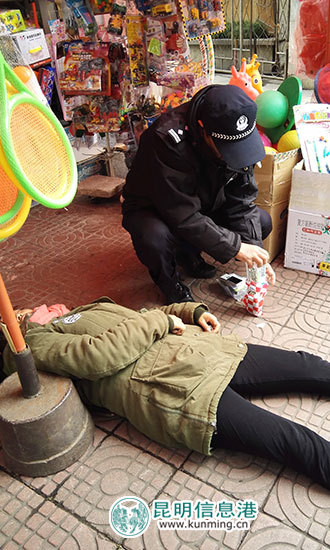 1月31日下午3点50分左右,一名妇女在峨山县城桂峰桥摔倒后昏迷不醒,峨山县公安局双江派出所值班民警接到报警后马上往现场赶,并通知了120。