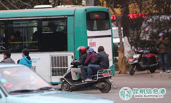 去年昆明市交警严查的电动自行车安装雨篷的违法行为中,曾遇到一个典型案例。当时在双龙桥路口,一辆公交车挂到一辆电动自行车的雨篷边缘,导致电动自行车翻车,车上乘客落地后被公交车后轮碾压当场死亡。