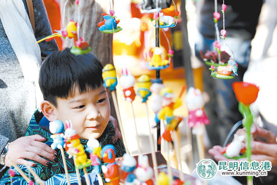 每年农历正月初九,昆明金殿都会举行隆重的“初九庙会”。400年来,老昆明人每到这天都会携家带口,进香祈福、登山赏花。跳花灯、唱山歌、舞龙灯、捏面人……各种各样的民俗活动、特色商品让大家感受到浓浓的年味。