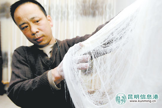 回龙村,村民丁绍明把温度刚好合适的“晴糖”拉成“丁丁糖”。“新年里要有糖才有甜味,麦芽糖是昆明年里最传统的甜味。”丁绍明在介绍时,手里的糖已经被拉伸了无数次,最终变成比头发丝还细的“发丝糖”,接着再把另一块摊平的糖里装上炒香的黄豆末,卷成了“卷糖”。尽管超市里的糖品很精美,“丁丁糖”铁块敲击的叫卖声和带着一丝奶香的味道,却是老昆明人记忆里最深刻的新年甜味。(昆明日报 记者李海曦 刘凯达 赵伟/摄 江雨珂 通讯员杨丽芬/文)