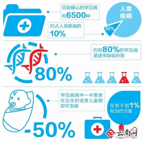 “根据世界卫生组织的报道,80%以上的罕见病都是由于基因遗传缺陷引起的。”省一院遗传诊断中心主任朱宝生介绍,很多罕见病患者一出生或者在儿童期就开始发病,发病后病情进展快,缺乏有效的治疗药物和手段,且死亡率高;由于缺少相关的研究和治疗经验,很多医务人员遇到罕见病人后,往往束手无策,甚至会发生误诊。此外,一个罕见病人的出现,必将造成沉重的家庭负担,因病致贫、因病返贫的家庭很普遍。