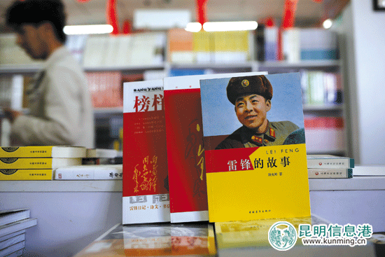 在新知图书城小西门店,关于雷锋的书籍库存种类有15种,包括光碟、故事书、名人挂画等。昆明新华书店的昆明书城、滇池书城等几家书店目前有关雷锋的书籍、画像约有40多个品种。