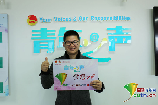 3月23日,天津师中师教育信息咨询有限公司创始人、“青年之声”创业服务联盟创业导师范锦伟做客《导师秀·心互动》在线访谈。图为范锦伟为“青年之声”点赞。记者朱梦琪/摄