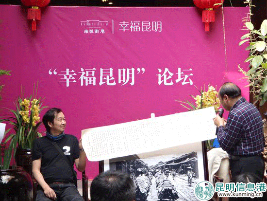 “我的幸福日,不能没有幸福的故事。”南强街巷“幸福昆明”大型主题系列活动精彩纷呈,城市MINT音乐节,情侣慈善晚宴,慈善音乐会,上海大世界基尼斯申报,昆明非物质文化遗产展示,昆明记忆殷晓俊记忆摄影展,“幸福昆明”论坛等活动盛装登场,其中最受瞩目的是“幸福昆明”论坛,由不同年龄阶段代表昆明的典型人物,聚集一堂,畅所欲言,回首和展望昆明数十年的发展历程以及城市的变迁,讲述自己亲历的幸福故事,阐述自己对幸福的不同感受和理解。著名花鸟画家李世民先生说:“昆明四季如春的气候,昆明的鸟语花香,昆明这片土地本身就是幸福。”知名作家、网络媒体人风之末端说:“昆明人知足常乐,容易满足,有自己的幸福观。”
