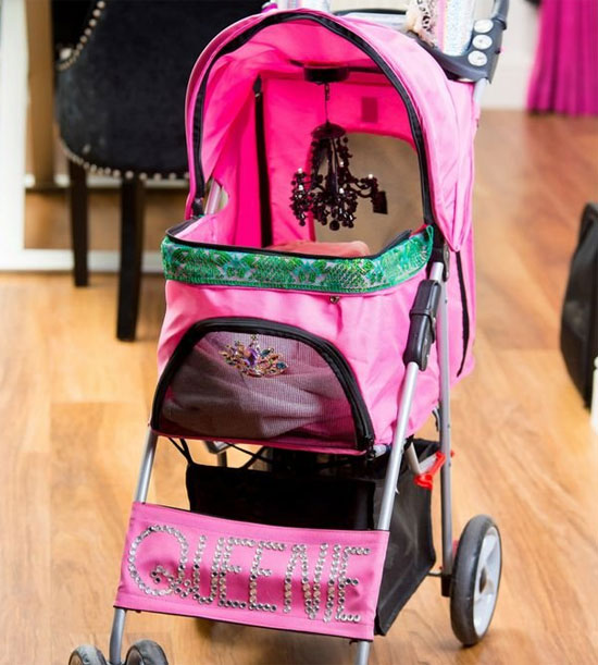 两年前,狗主人约瑟芬卡特买了这只只有手提包大小的吉娃娃,取名奎尼。打扮爱犬是她最大的爱好。养尊处优的小狗不仅有自己的裙子、外套、帽子、假发及首饰,还有私人手推车。约瑟芬在爱犬装扮上的花销甚至超过自己的,但是她认为这么做是值得的。