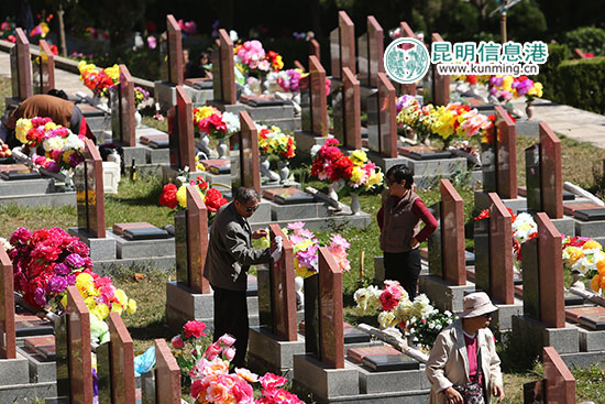 在昆明一墓园内,墓地前摆放的大多是塑料花 首席记者张玉杰/摄