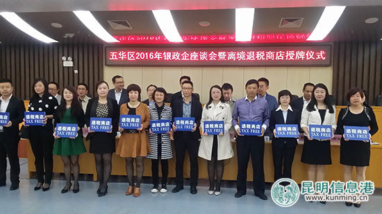 昆明信息港讯 记者杨雁 4月8日,五华区2016年银政企座谈会暨离境税商店授牌仪式举行,五华区范围内的昆明国美电器有限公司、昆明王府井百货有限公司等16家企业门店获批“云南省首批离境退税商店”,本月起,凡通过昆明长水机场、丽江三义国际机场两个空港口岸进出的境外旅客,如在这16家企业购物,且符合退税条件的个人物品,离境时可享受退税政策。