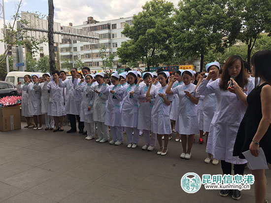 为了使更多的失明人士能早日重见光明,昆明爱尔眼科全体医护人员集体宣誓:传光明递希望,发扬人道主义精神,移风易俗,奉献爱心,关爱生命,加入到捐赠眼角膜的高尚者的行列。下午两点,爱尔眼科医院门口人头攒动,几十名身着白大褂的爱尔眼科的医护人员,整齐地站成几排,旁边放着上百只亲手折的“心形”千纸鹤,他们宣誓的举动引来无数市民驻足。