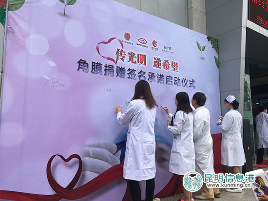 昆明信息港讯 记者王诗贻 4月10日,由昆明共青团官渡区委发起,爱眼基金会、爱尔眼科共同承办的“传光明递希望,角膜捐赠签名承诺启动仪式”在昆明爱尔眼科医院举行。