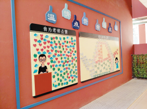 走在云波小学的教学楼上,每间教室内外都有一面装饰精美的“点赞墙”,学生填写的点赞卡张贴在“点赞墙”上。下课后,孩子们会站在“点赞墙”边,看看谁的点赞卡写得好,看看谁被点了赞。“点赞墙”上的内容每周更新,每个同学都有机会让自己的点赞卡上墙。而且每班都有“点赞集锦”:把收集的点赞卡装订成册,在师生间相互传阅。校级点赞墙设在学校走廊最显眼的位置,每月班级将优秀的点赞卡提交学校,经装饰后张贴在校级点赞墙上。梁月玲校长说:“远的榜样不如近的好,近的不如身边的好,身边的不如同伴好。”活动开展以来,“每个学生都能在赏识别人和被别人赏识的快乐中健康成长。”