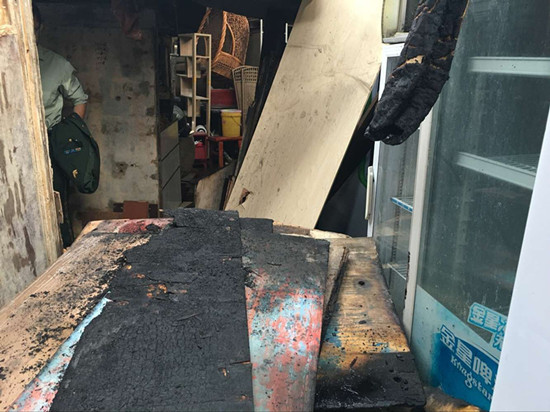 商铺外满是旧冰箱、洗衣机,附近几家商铺又是家具店。“要是引燃了附近商家,后果不堪设想。”旁边的一位老板介绍,发现后,商铺的门已经被火力冲开。商场里几十位老板纷纷出动,有的打开消防栓,有的提水过去,有的拿自家的消防器材前去灭火。