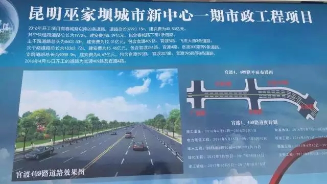 4月15日巫家坝城市新中心一期开工建设。据建设方介绍,2016年开工项目有春城路以南21条道路,道路总长37993.15m,建安费40.53亿元。