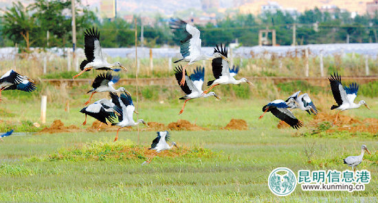记者昨日从云南野鸟会获悉,该会会员在晋宁县发现20只钳嘴鹳在湿地觅食。据悉,这是继2013年首次在晋宁东大河发现12只钳嘴鹳后再次发现这种鸟类。