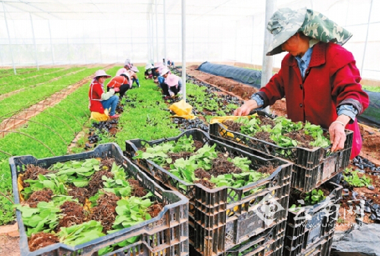 省农科院花卉研究所不断提高在花卉种苗(球)培育中的集成技术以及精确控制水平。目前,该所年产非洲菊、满天星等各类优质花卉种苗(球)2000万株,销往全国各地及马来西亚、越南等东南亚国家。图为在玉溪九溪基地,种植员工正在对非洲菊种苗进行收储。(云南日报 记者杨峥)