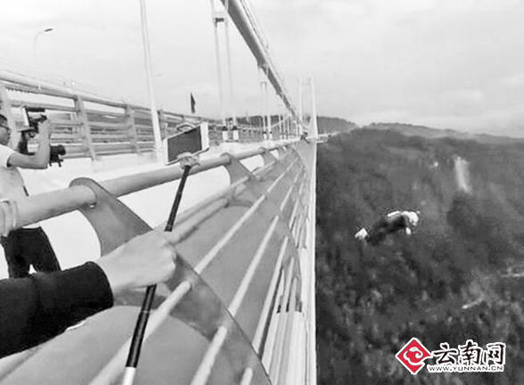 龙江特大桥自本月20日通车后,连日来,大桥横跨于龙江两岸的雄姿吸引了无数网友的眼球,成为微信圈中关注的一个热点。24日,一名男子在龙江特大桥低空跳伞的视频刷爆朋友圈:只见他从桥面一跃扑向龙江,在极速坠落数秒后打开降落伞包,成功完成大桥通车后的第一跳。视频再次引发众人议论和关注龙江特大桥的热潮。昨日,记者从云南公路开发投资有限责任公司保山管理处了解到,经多方证实,发生于24日上午的这一事件,当事人事前并未向相关部门报批,属于个人行为。为杜绝安全隐患,管理部门表示,今后将加强管理,不允许类似事件再次发生。