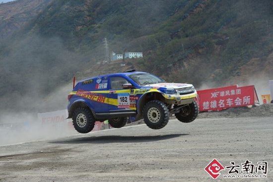 经过了三天的泥石流赛道的竞逐后,作为本届比赛的收官之战,今日在东川大白泥沟上演超级短道比赛,精彩的比赛令现场车迷大呼过瘾。这项由雄风集团总裁、云南省汽车摩托车协会会长麻俊昆于去年首次在东川推出的全国越野赛车多车群发,同场竞技的创新型赛车模式,已受到了全国广大赛车手和车迷的肯定,并已在全国各大汽车赛事中成为了争相借鉴的典范,它改变了原来场地赛只有2辆车分别在各自赛道竞逐的方式,以5车分别以双排错位发车,多车同场竞速,分别计时录取名次,在长达1.2公里的赛道上,5辆赛车在直道上疾速追逐,弯道上精彩漂移,赛道上激起层层尘埃,弥漫天空形如沙场,经过分组角逐后,嘉禾兴产润滑油车队的李鹏程以2秒的优势锁定了冠军,夺走了所设的一万元奖金;黑熊轮胎雄鹰车队的黄凯和赵向前分别获得亚军和季军。