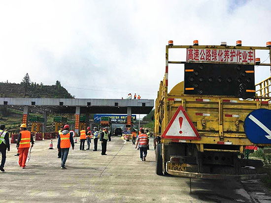 第二阶段:5月5日至6月20日。首先对收费站出、入口四个边道进行施工,该路段上下行线行车道及硬路肩进行封闭,快车道正常通行。待出、入口四个边道施工完毕满足车辆 碾压条件放行后,再对收费站出、入口两个中道进行施工,该路段上下线快车道封闭,行车道正常通行。