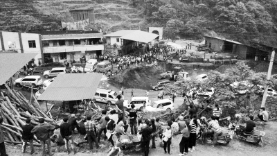 下午3时许,记者从镇雄出发一路辗转颠簸,终于抵达事故现场。这是一个狭长的山沟,四周群山环绕、人烟稀少,周围停满了救援车辆。在沙坝煤矿矿井旁的一个棚子里,临时摆放着被搜救出来的6名遇难者遗体。