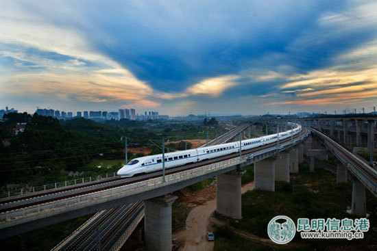 云桂铁路从昆明出发,经石林、弥勒、文山、百色,抵达广西南宁,正线全长710公里,其中云南段正线长431.2公里,开行旅客列车速度目标值为200公里每小时,预留进一步提速条件。建成后,昆明至南宁4小时可到达,昆明至广州7小时可到达。(都市时报 记者乔长红 通讯员宋鹏 贾新宇 马闪山)