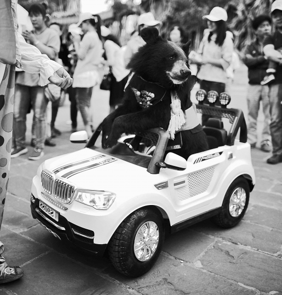 野生动物园小熊开汽车捧场科技周 记者王宇衡/摄