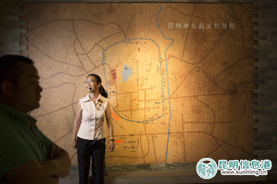 金祖英从政府部门退休后,到讲武堂做志愿讲解员,已有半年时间。每周二、四、六,她都会在讲武堂里为人们义务讲解。她以“我们学校”来称呼讲武堂,讲述昆明“重九起义”时,结合“昆明重九起义形势图”,将黄毓英提前打响重九起义第一枪、朱德深入云贵都督府智擒李经羲,讲得荡气回肠。甚至,当《两只老虎》旋律响起时,参观者们也乐意和她一起唱“国民革命歌”。