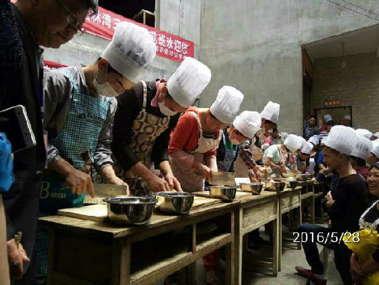 4月28日至5月12日,云南新子路培训学校教师在镇雄县旧府街道松林湾村三所坟村民小组开展中式烹饪技术培训。图为群众在进行实际操作。