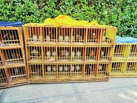 昨日上午10时,记者来到云端小游园,这里除了遛鸟的大爷,只有两三个售卖小鸟的摊贩。摊贩们表示,平时只出售观赏鸟类,周末才贩卖野生鸟类。记者看到一种头顶为棕红色、身体为褐色的鸟,平时并不常见,摊位老板表示这是自家养的,并非野生。